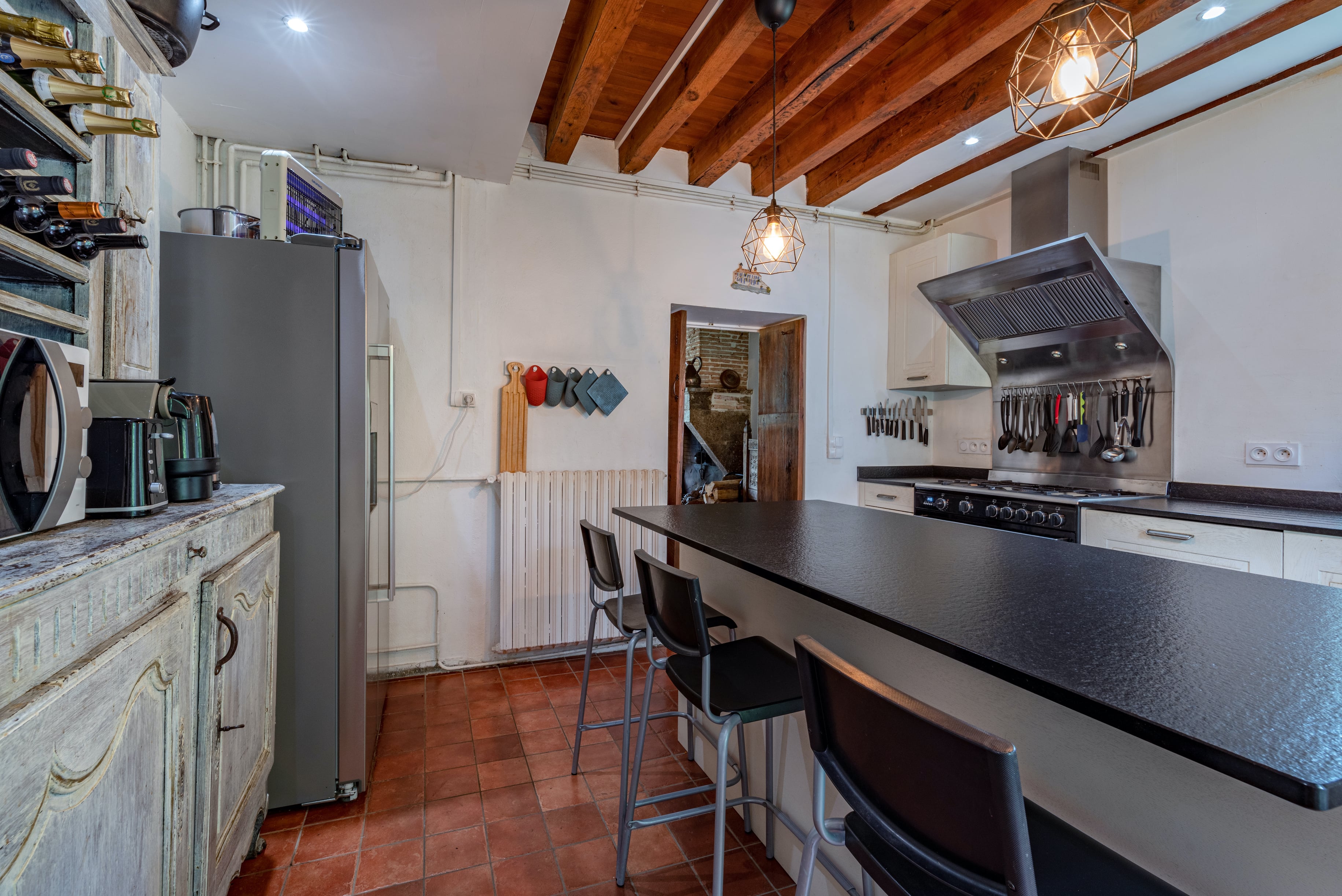 Dining room with large working open fireplace