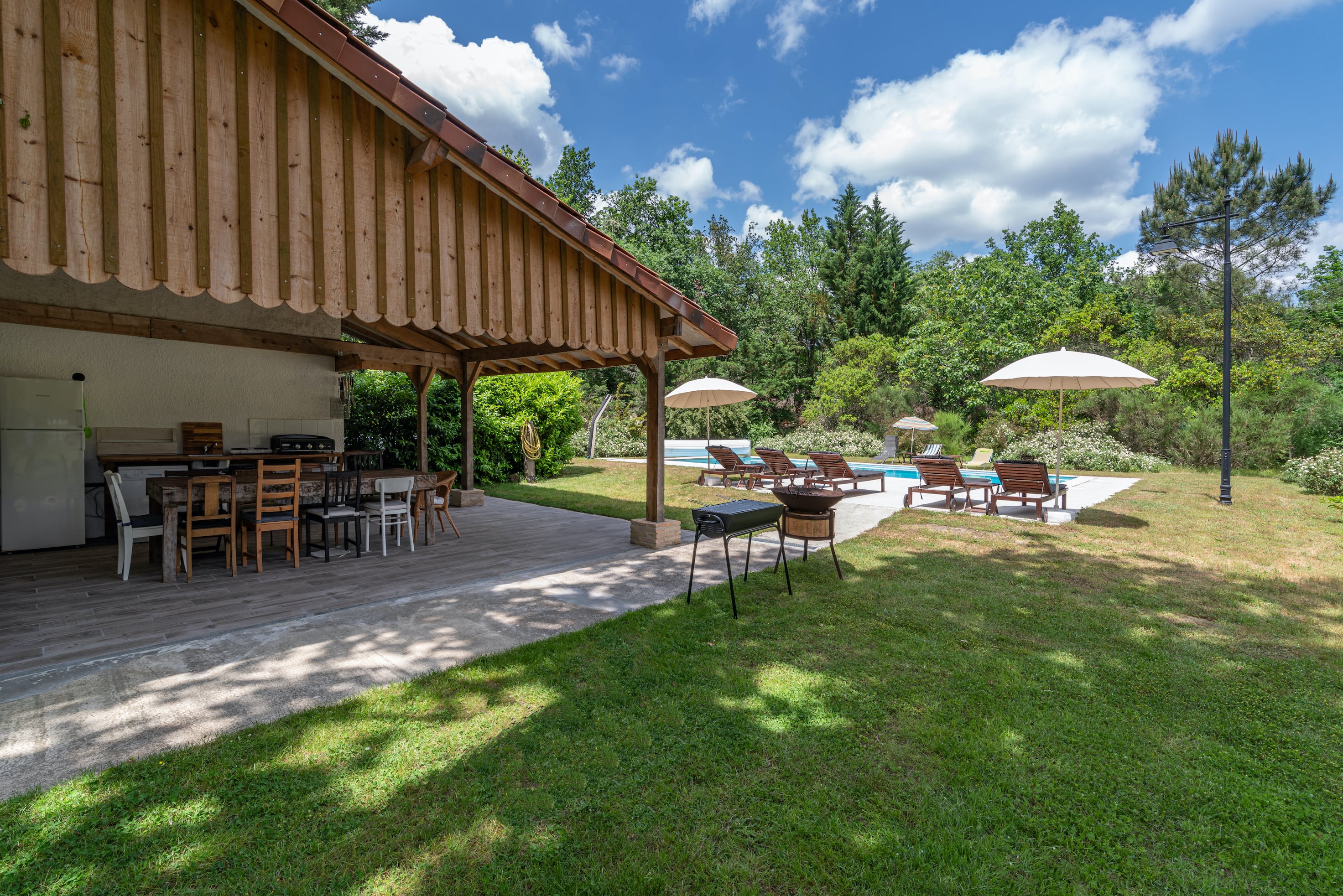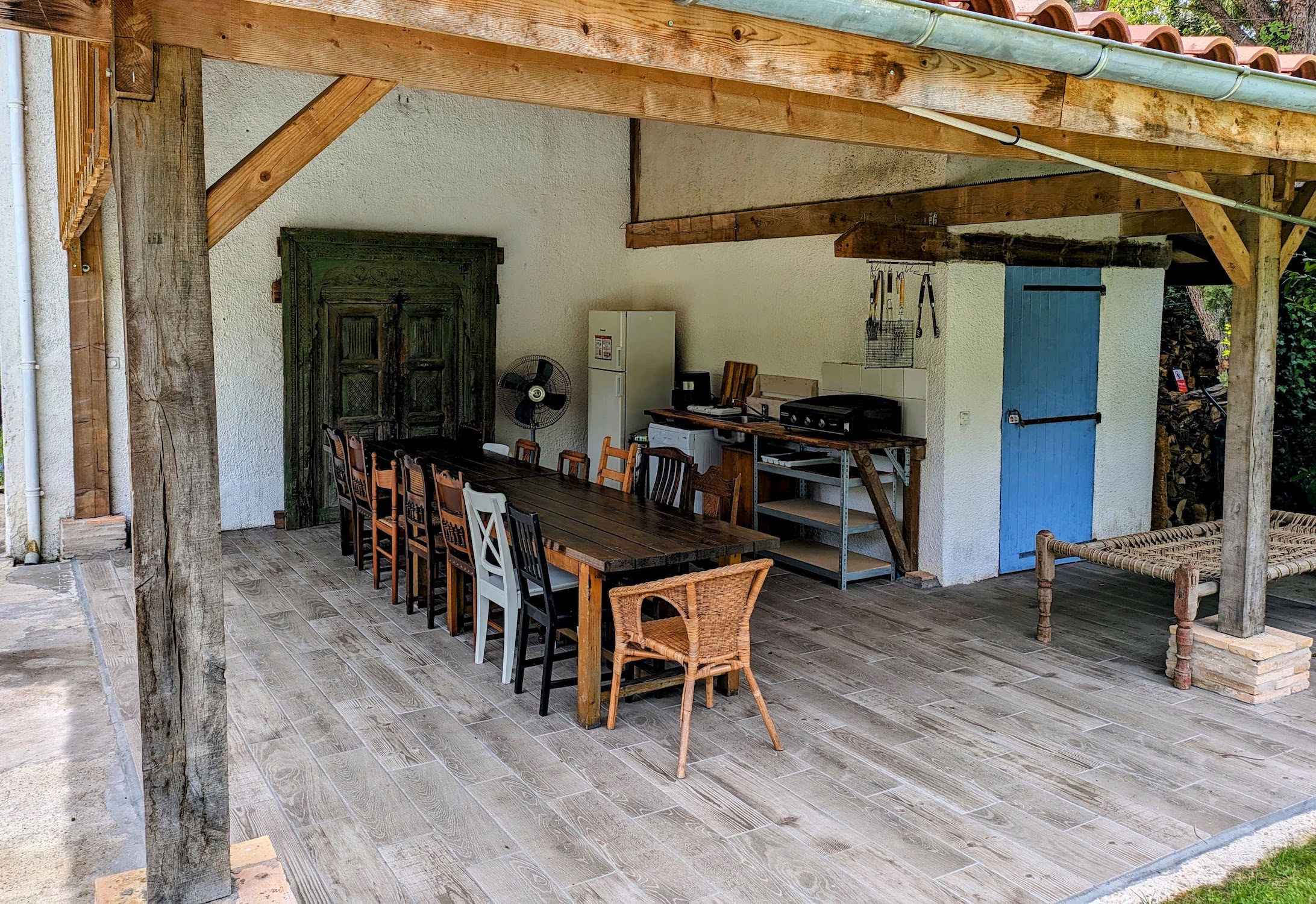 Cuisine l’été with plancha, fridge-freezer, sink and dishwasher.