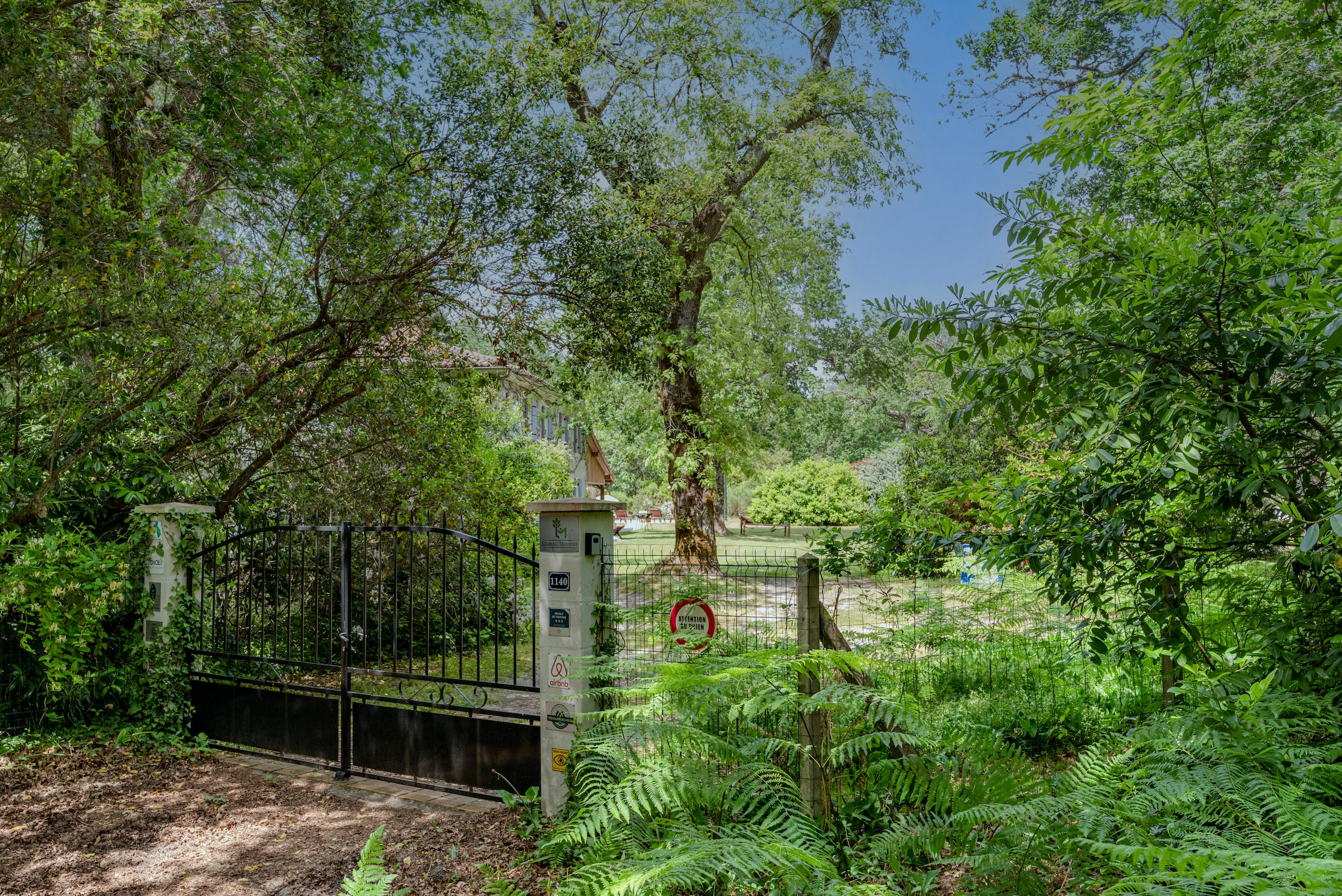 Gated entrance at end of a 1.5 km driveway