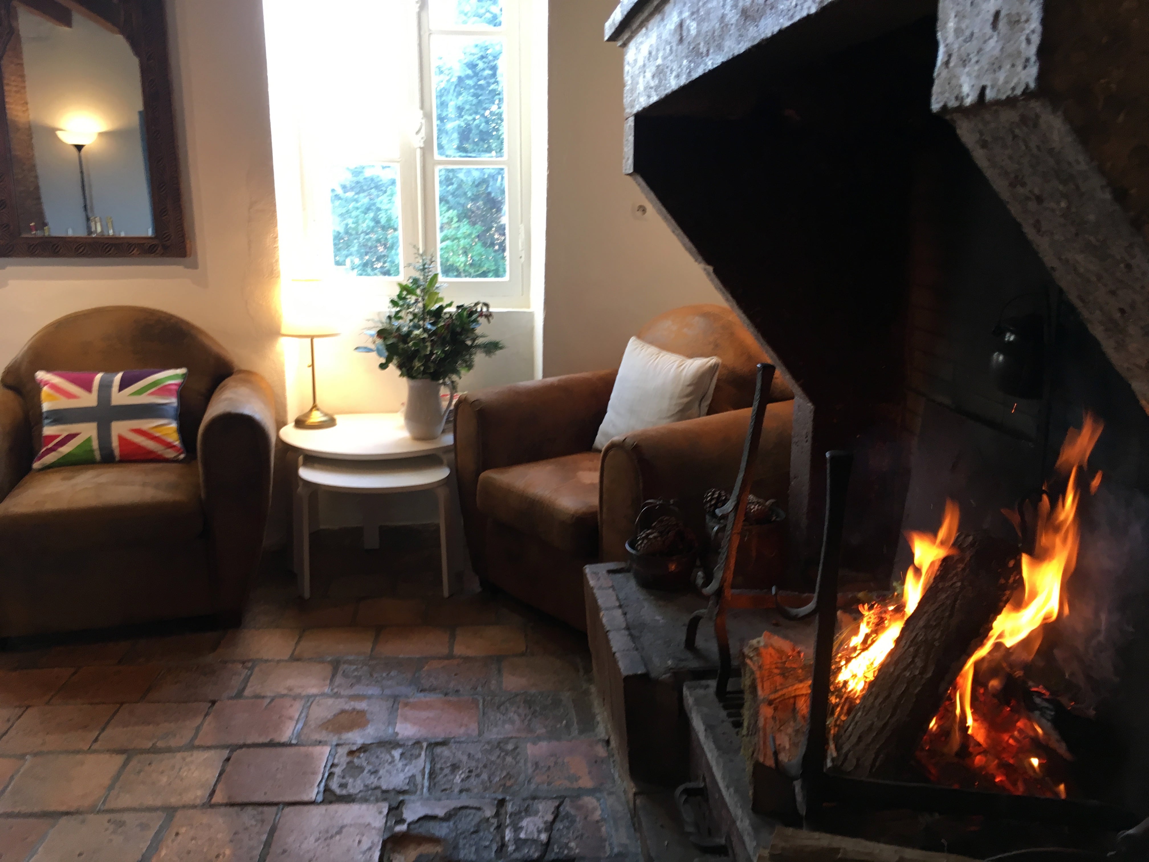 Wood burner in living room for a cooler night