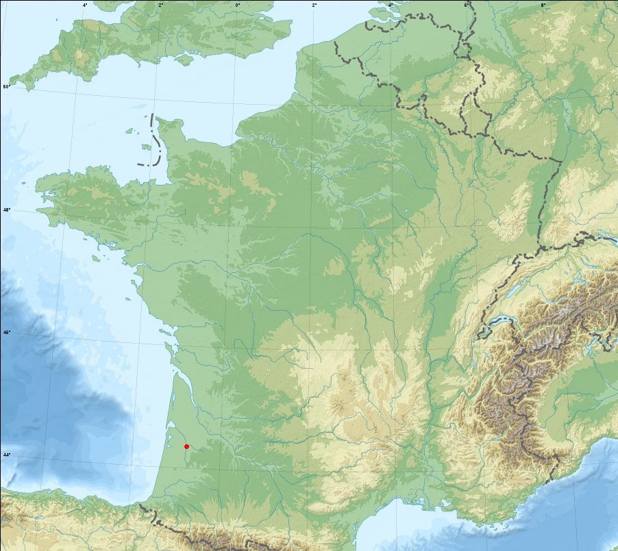 Gascony Map - Red star is L'Airial, Moustey