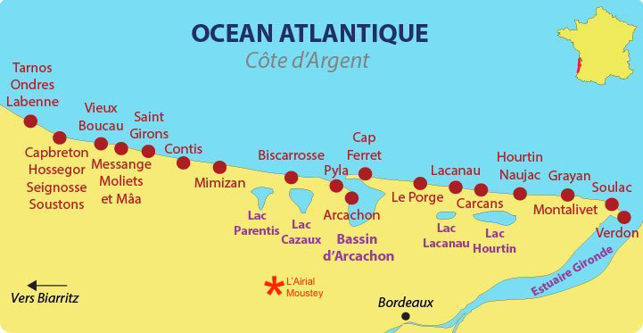 Local beaches - Red star is L'Airial, Moustey